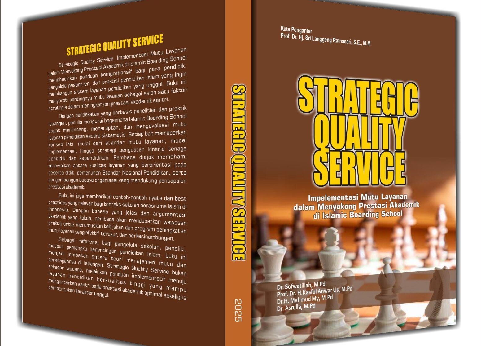 Strategic Quality Service, Implementasi Mutu Layanan dalam Menyokong Prestasi Akademik di Islamic Boarding School menghadirkan panduan komprehensif bagi para pendidik, pengelola pesantren, dan praktisi pendidikan Islam yang ingin membangun sistem layanan pendidikan yang unggul. Buku ini menyoroti pentingnya mutu layanan sebagai salah satu faktor strategis dalam meningkatkan prestasi akademik santri.